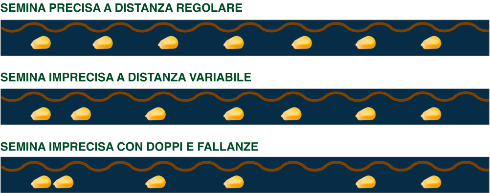 la distanza di semina corretta tra i semi garantisce uno sviluppo ottimale di ogni singola pianta di mais, specialmente per densità di semina elevate.
