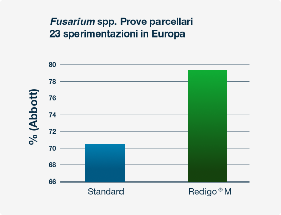 Redigo® M è caratterizzato da due principi attivi con diverso meccanismo d'azione sui patogeni: Protioconazolo, inibitore della biosintesi dell'ergosterolo, e Metalaxyl, inibitore della biosintesi degli acidi nucleici. L'azione combinata e sinergica di queste molecole assicura la miglior germinabilità e vitalità della pianta. Scegli la combinazione vincente per ottenere i migliori risultati