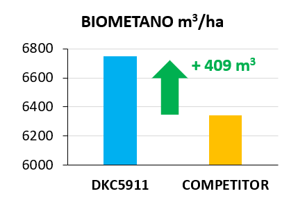 In un contesto di sempre più difficile reperimento delle materie prime e nella sempre maggiore rotazione colturale degli appezzamenti DKC5911 può rappresentare un’importante risorsa anche per gli impianti di biogas matper l’approvigionamento.