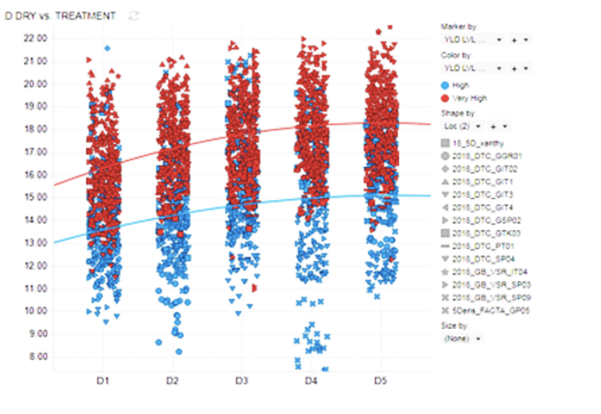 Da analisi effettuate su più anni DKC6092 presenta un rapporto nettamente superiore ad 1. Non è possibile dare un valore univoco dal momento che tale valore è influenzato sia dalla genetica che dall’annata, dagli input agronomici o da situazioni di stress che subisce la coltura del mais.