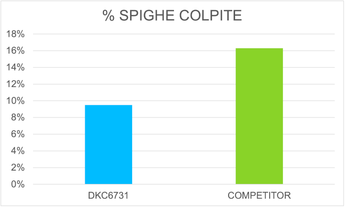 Grafico 6: % spighe colpite DKC6731 vs competitor